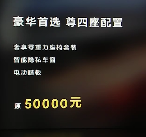 四座版也加了配置,原来五座上需要选配的后排双零重力、隐私车窗还有电动踏板配置,在四座上都标配了。这一下真就成了老板专车了。