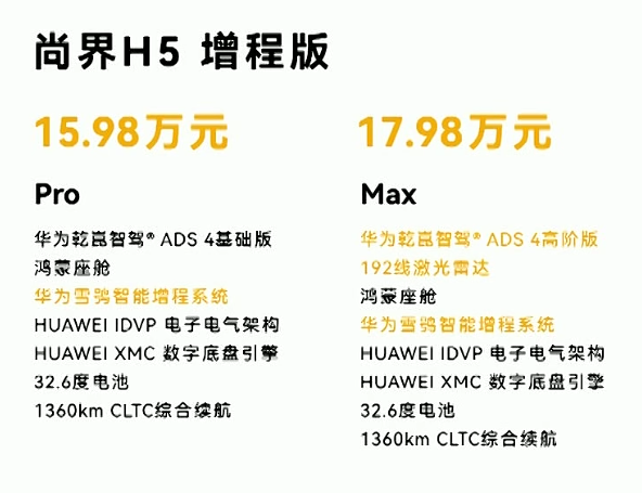 增程有Pro和Max两款车型,电池都是32.6度电,差别主要是智驾。Pro是ADS 4基础版,没有激光雷达,价格15.98万;Max上了激光雷达,售价加2万。