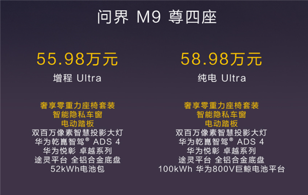 这次主要在原来六座、五座的车型基础上,增加了一个四座,增程卖55.98万,纯电是58.98万。