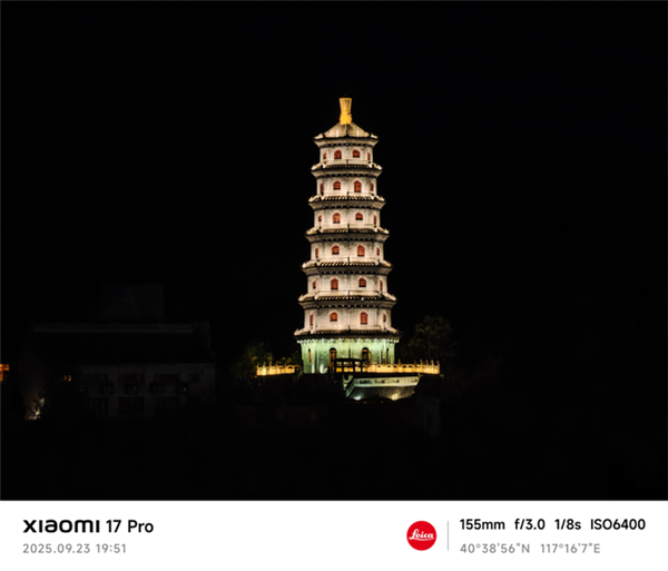 在这种明暗对比极为强烈的夜景中,小米17 Pro的实力非常出色,通过上面的样张可以看到,各类光影的对比非常协调,基本上能够很好地还原我们肉眼所看到的效果,成像效果优秀。
