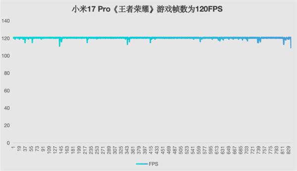 《王者荣耀》游戏表现方面,毫无疑问是120FPS满帧的表现,并且这个时候的平均的功耗仅为3.4W,性能释放地非常不错,能够提供非常稳定的游戏表现。