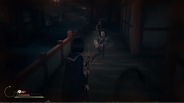 另外还有来自生存的恐惧,想必大家都有做过被可怕的东西无尽追杀的噩梦吧,即使你知道那是在做梦,但还是会一直拼命的跑下去。而在《寂静岭f》的游戏的前期,生存恐惧就类似于做噩梦被人追,明明看得见怪物就在我们眼前,但是你只能想尽办法逃跑,还要时刻警惕可能出现的怪物,游戏里在我们获得武器和战斗能力之前的生存恐惧,还是给得很足的。
