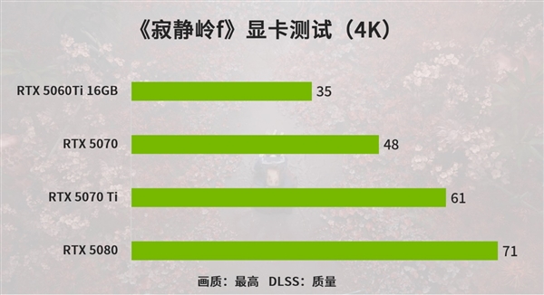 最高画质下,开启DLSS 质量选项,1080P分辨率下,RTX 5060 Ti以上的显卡游戏体验更佳,2K分辨率,选择RTX 5070以上的显卡,4K分辨率,更推荐 RTX 5070Ti以上的显卡。