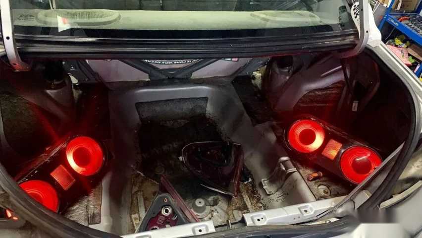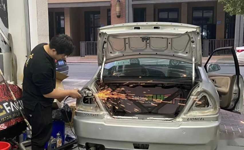 "车买后就开始改R32尾灯,这也是我改装这辆车最难忘的时候!切尾盖时觉得五个切盘就够了,但结果花了几十个切盘,来回跑了好几次五金店。不过好在最终尾盖切好了,R32尾灯也顺利安排上车了。"