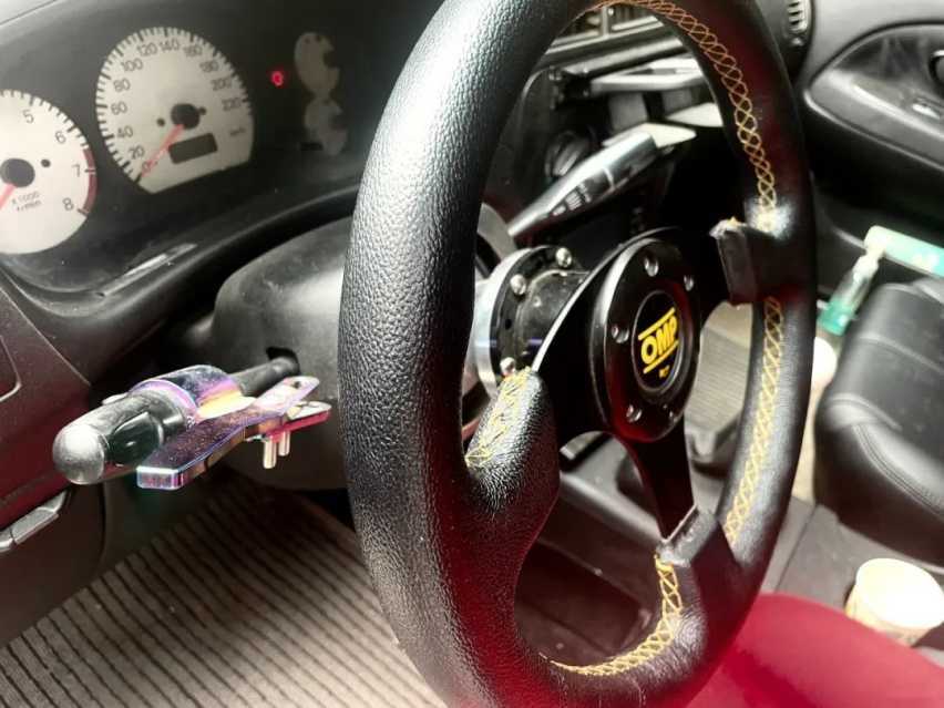 "内饰方面,换上了竞技方盘+底座、赛车桶椅、全车黑内门板座椅、MK4水杯架,让驾驶这辆车时更有感觉,更像是在开一辆R32。"