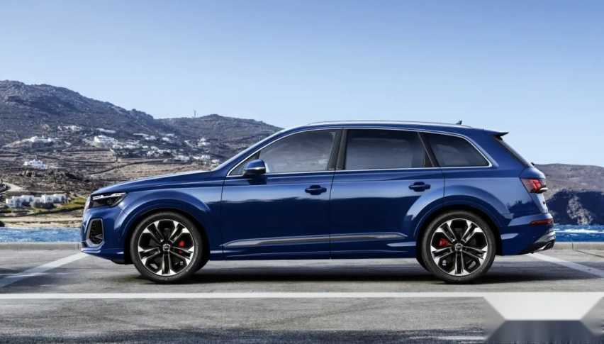 车身侧面,新款奥迪Q7的变化并不大,依旧给人一种沉稳大气的感觉,有着修长硬朗的腰线,搭配前后突出的轮眉,让车身更具力量感;车辆的窗线和车门底部采用镀铬饰条进行装饰,为整体增添几分时尚气息。同时,新款奥迪Q7还新增了3个外观颜色,包括Ascari Blue、Sakhir Gold以及Chili Red。