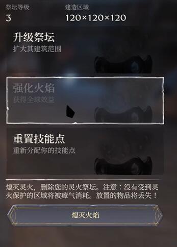 3、然后我们再打开祭坛画面,可以看到强化火焰按钮已经灰掉了,代表着无法再继续往上升级了。