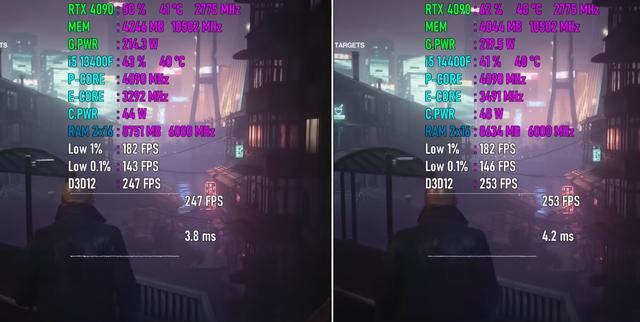 以下将分别测试七款游戏,均采用1080P最高画质模式,以下系列图片中左边代表Core i5-13400F平台,右边代表平台。