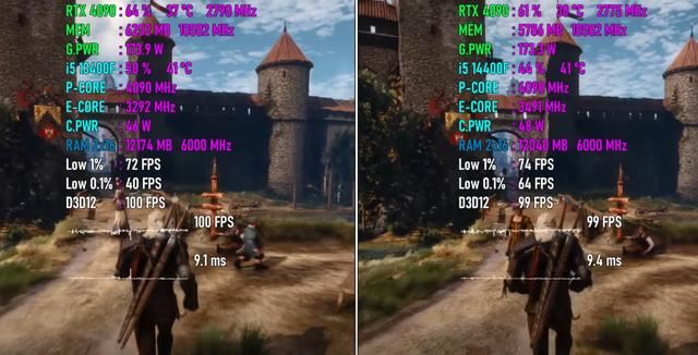 在这款游戏中,两个平台的CPU使用率基本相等,Core i5-14400F平台的内存使用量比对手低0.2GB,GPU使用率低3%,显存使用量低于0.5GB。15271204092