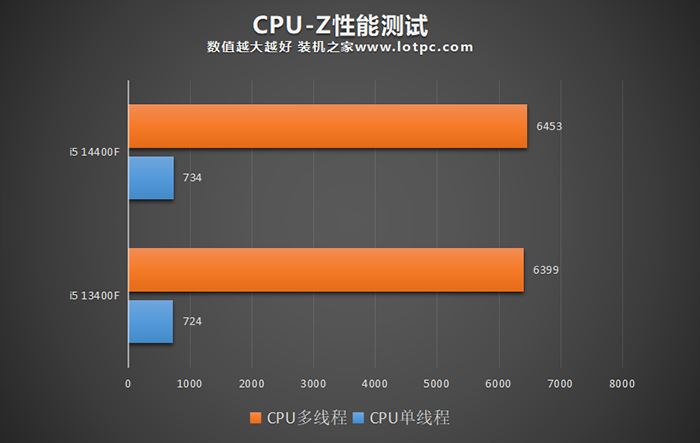 CPU-Z基准测试中,i5-14400F对比i5 13400F,在单核性能领先了1.3%,多线程性能上领先不足1%。