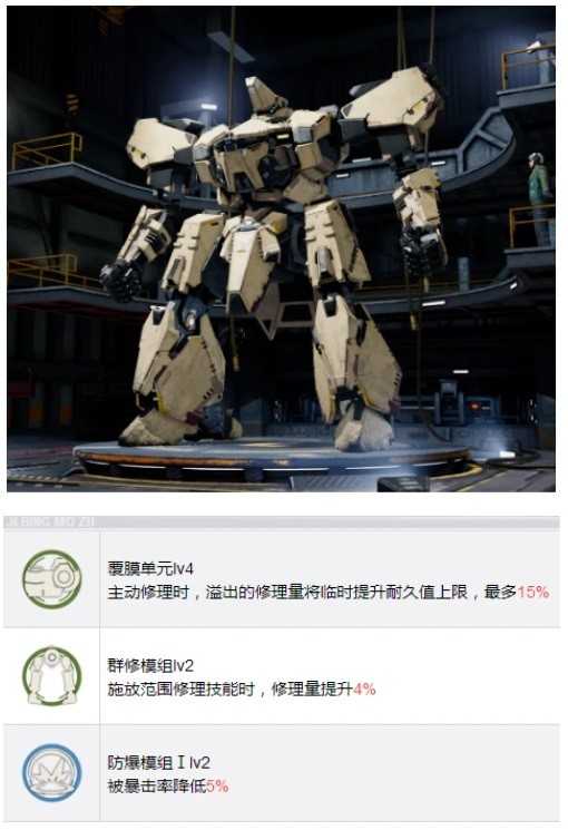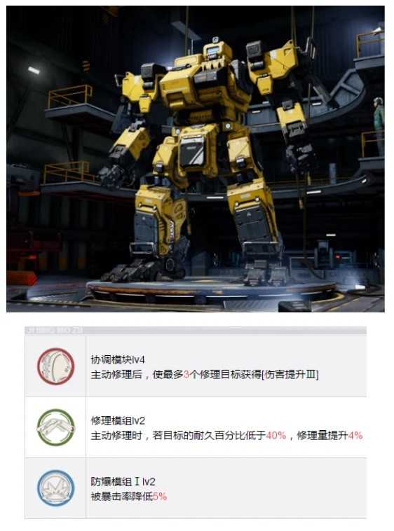 中型修理机兵,技能组更适合赛文那种直接的修理模式,如果没有梅利莎,那么就为赛文肝一台朝阳吧。