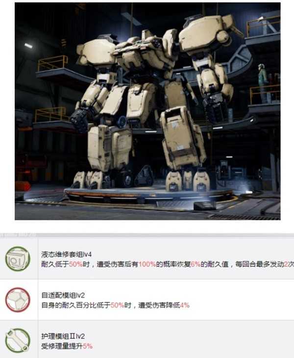 重型伤害机兵,技能组狂怒单元和反击模组,非常适合装备轻狙且能先手反击的叶夫根尼。