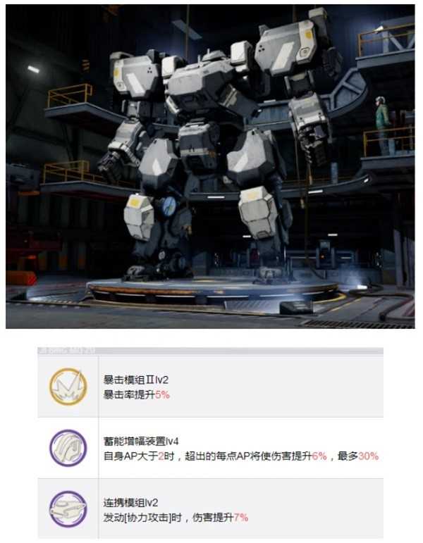重型辅助伤害机兵,技能组对于白月和威廉来说都非常适合,但如果硬要选的话,这台机兵完美适配于白月。