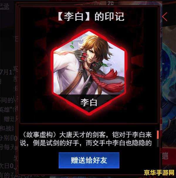 在《王者荣耀》这款游戏中,李白印记是一个独特的标记,它代表了玩家在使用李白这个英雄时的成就和经验,这个印记不仅是对玩家技术的认可,更是玩家在游戏中的成长记录。