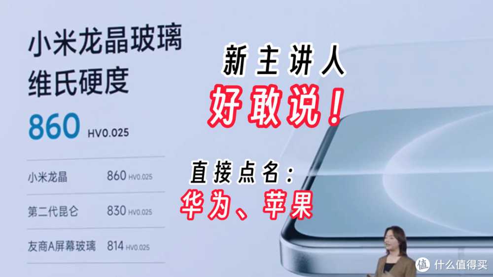 发布会上介绍了龙晶玻璃的首次应用,主讲人说这项新材料以其出色的性能和坚固的特性受到了热烈好评,其维氏硬度高达860,超越了市面上大多数竞品,包括苹果采用的超磁晶玻璃以及华为的第二代昆仑玻璃。龙晶玻璃的抗跌落性更是令人印象深刻,为用户带来了更加可靠的使用体验。主讲人称这些材料的运用构建了小米龙铠架构,为手机提供了全方位的保护。这一设计使得小米14 Ultra在耐用性和可靠性方面达到了新的高度,用户可以更加放心地使用手机。