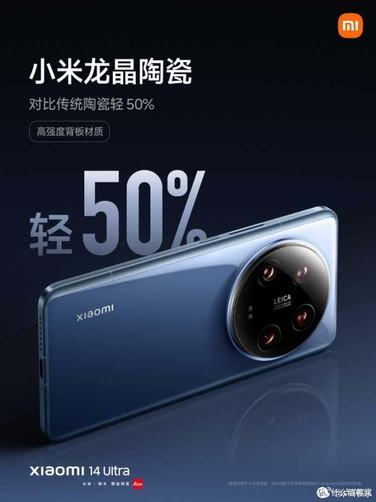 可选黑、白科技纳米皮版本,以及全新回归的蓝色陶瓷版本(龙晶蓝,重 229.5g)。小米表示,此前两代由于重量因素,小米旗舰新机没有搭载陶瓷后盖。得益于全新小米龙晶陶瓷,“比传统陶瓷轻 50%”,陶瓷后盖在小米 14 Ultra 上回归。