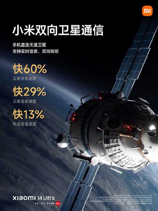 同时,小米14 Ultra支持双向卫星通信,手机直连天通卫星,支持实时语音、双向短信,卫星寻星速度快60%,卫星连接速度快29%、电话接通速度快13%。
