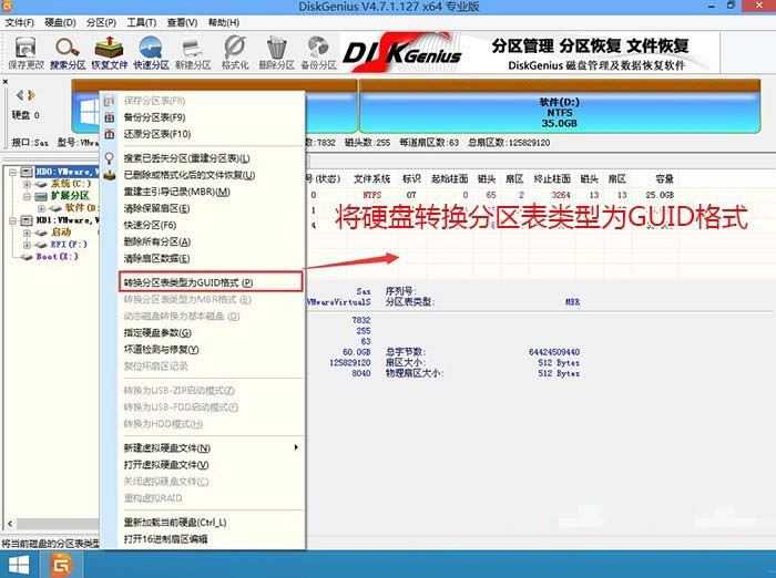 1、进入已经制作好的U盘PE系统,双击运行PE桌面工具箱里面的DiskGenius分区工具,然后点击菜单栏的硬盘,在打开的下拉菜单项中,选择转换分区表类型为GUID格式(如果不是GPT格式,则需要转换),然后点击左上角的保存更改即可;