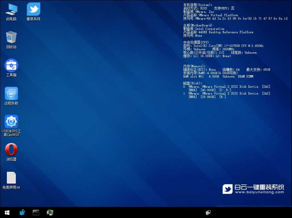 5、白云装机PE下,回车选择02.启动Windows_10PE_64位(适合新机器);注:Legacy方式启动时有菜单选择,UEFI方式启动时自动进入Win10 PE