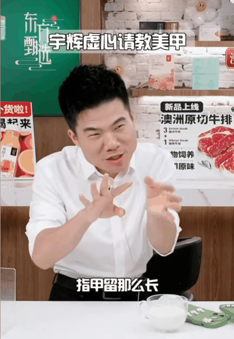 此前,董宇辉曾在直播间曾谈到对女生美甲的困惑:指甲留那么长,还镶几个钻,你们咋打的字?