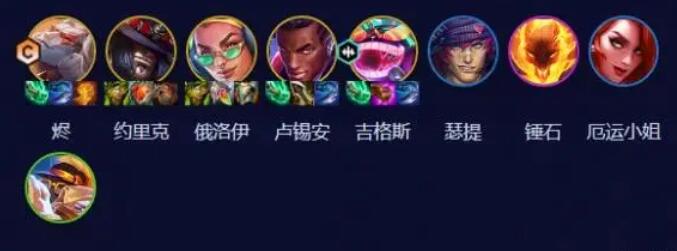 以上就是爵士烬阵容图文攻略,阵容由烬、腕豪、掘墓、俄洛伊、锤石、女枪、巴德、炸弹人、卢锡安组成,希望对各位玩家有所帮助。