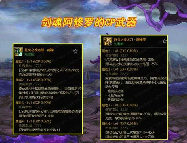 剑魂CP光剑没人带主要是“万剑归宗”有点鸡肋,特化之后依旧刮痧!而韩服“平A流”强到离谱,一个里鬼剑术秒天秒地了,何须刮痧武器?至于阿修罗的武器嘛,瞧一瞧属性就知道是特效装备!搬砖玩家都嫌弃。
