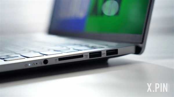 两个 USB-C 、两个 USB-A 、一个 HDMI 和一个 SD 读卡器,以及极为先进的 3.5mm 耳机接口,这对于一台轻薄本来说,已经相当豪华了。