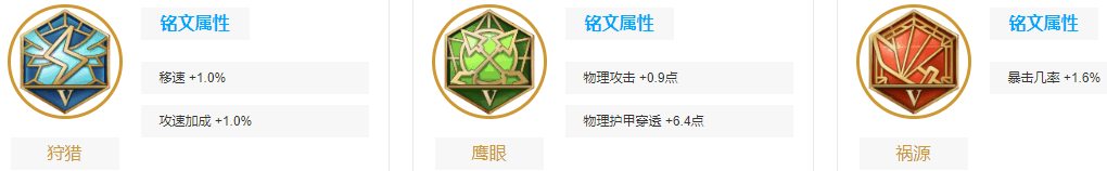 1、铭文顺序:蓝色狩猎、绿色鹰眼、红色祸源。