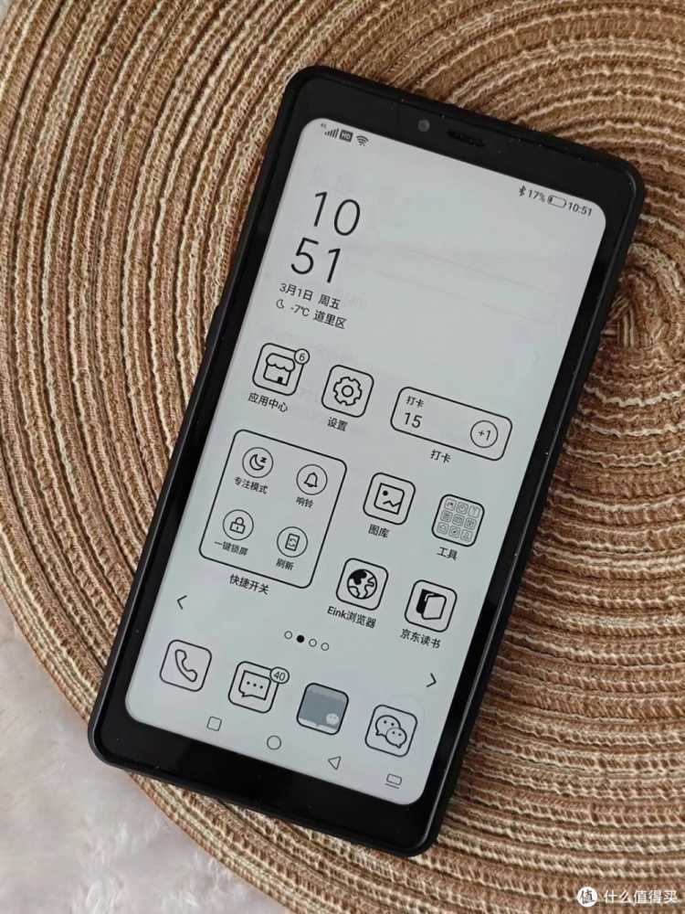 这款手机我平日主要搭配微信读书APP使用,我是微信读书的重度用户,日均使用5-8小时左右,相对于传统手机来说,墨水屏手机的功效还是比较明显的,长时间使用阅读,眼部不适感较少。不过墨水屏手机真的只适合读书,有人想用来刷抖音,玩玩小游戏什么的,我是极为不推荐的。