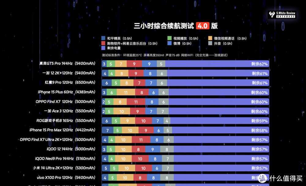 续航方面一加12给到了5400mAh大电池,配备了长寿版100W有线闪充和50W无线闪充,最快从1%至100%最快26分钟就能完成,更大容量的电池配合能效表现更好的高通骁龙8 Gen 3处理器以及LTPO技术加持的2K东方屏,手机续航能力至今依然占据小白测评三小时综合续航测试第二名,真的很强。
