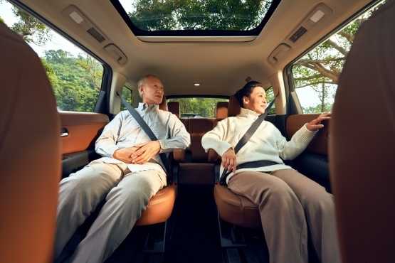 敞布局 ,三排大沙发,座座皆舒适 ,完美适配多孩家庭。 二排独立舒心航空椅 , 设置前后可移动调节 210mm 的滑轨 ,腿脚可轻松舒展无压力。第三排的“一键