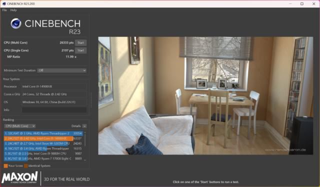 在Cinebench R23中,i9-14900HX的多核成绩达到了26333pts,单核成绩也来到了2197pts。成绩属于目前移动平台的高端水平,相比上一代有所提升,特别是单核性能,更高的睿频起到了作用,在游戏中更有优势。