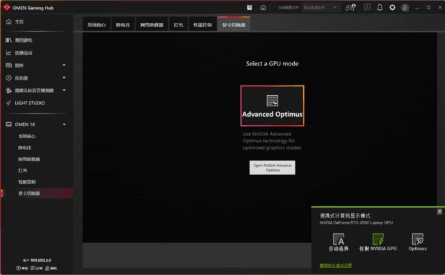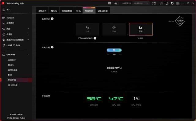 另外OMEN Gaming Hub也有功能更新,比如狂暴模式提供高级设置,提供了智能性能提升和最大电池消耗两个选项,可以进一步提升性能。此外,OMEN Gaming Hub还有很多非常实用的功能,比如监控浮窗,可监控项目多,而且设计美观;Light Studio对于使用OMEN或HyperX外设的玩家来说也很好用,可以统一设置灯效并联动,视觉效果更好。总体来说OMEN Gaming Hub确实是个宝藏,值得玩家好好探究一番。