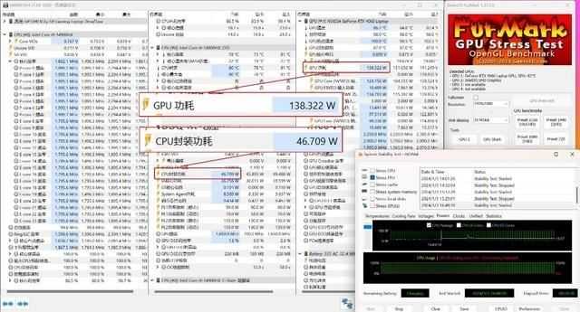 下面是用户非常关心的双烤测试,处理器和显卡的设置同上。20分钟后,处理器的功耗稳定在46.7W,显卡的功耗稳定在138.3W。也就是说,暗影精灵10实现了CPU 46.7W+GPU 138.3W=185W的整机性能释放!非常给力。不愧是满功耗高性能游戏本,暗影精灵10可以充分发挥出处理器和显卡的性能,实现100%性能输出。