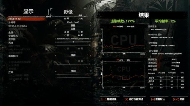 《古墓丽影:暗影》的画质直接选择最高,运行Benchmark得到平均126帧,可以说非常流畅,暗影精灵10玩起来轻轻松松。