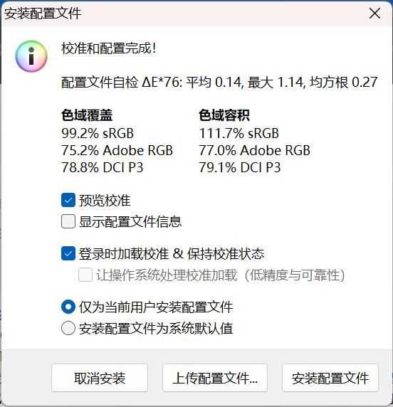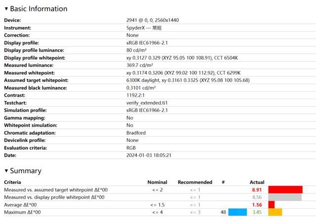 数据方面,实测屏幕最大亮度为372尼特;色域覆盖99.2% sRGB、75.2% AdobeRGB、78.8% DCI-P3,色域容积覆盖111.7% sRGB、77% AdobeRGB、79.1% DCI-P3;平均色准ΔE=1.56,最大值3.45。从实测结果可以看到,屏幕的基础素质是没有短板的,各方面都很出色。