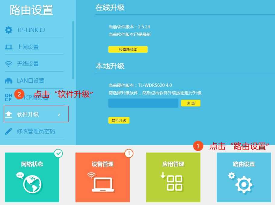注意:检测新版本有可能会提示路由器软件已经是最新,此时路由器无需升级。