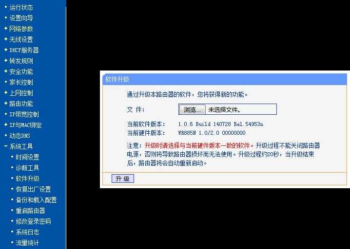 注意:如果您的路由器的页面风格与上图不一致,请您点击传统界面升级方法。