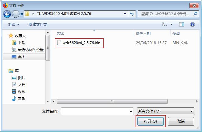 选中已经解压的升级固件,点击“打开”,如下: