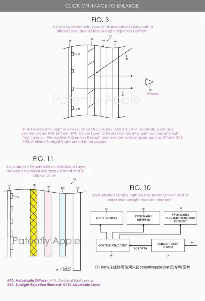 3 月 20 日消息,根据美国商标和专利局(USPTO)近日公示的清单,苹果公司获得了一项关于屏幕的专利,表示可以在户外阳光直射环境下,遮挡 90% 的强光,从而增加屏幕的可视度。