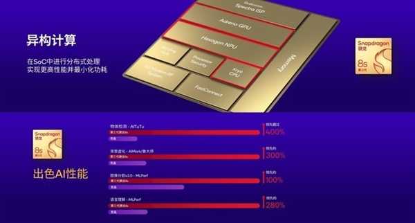 高通AI引擎一直都是采用异构计算设计的,它包括了Kryo CPU、Adreno GPU、Hexagon NPU(神经网络处理器)以及高通传感器中枢等处理器组件,因此在进行AI处理时,可以灵活选择最佳处理器。另外,第三代骁龙8s也支持INT4精度,能够更为高效地处理当下的应用需求,并且最小化功耗。