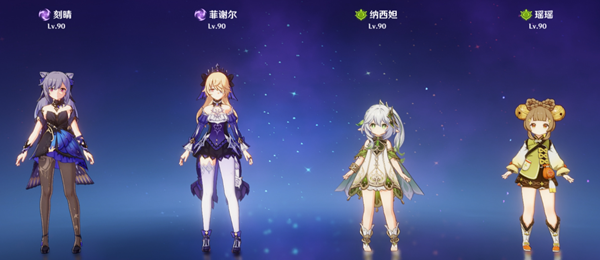 二、刻晴+菲谢尔+纳西妲+瑶瑶