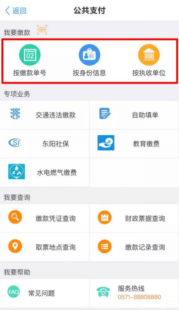②点击首页“公共支付”;