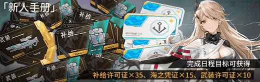完成日程目标可获得补给许可证×35、海之凭证×15、武装许可证×10