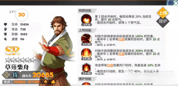 2、阵容搭配:霸王丸是这一关敌人的核心,其每个回合都可以提供一个很大的护盾(100%*大生命值),如果不能破盾那么就会陷入循环。小编这一关的破阵思路是利用驱散效果,只有在这个状态下才能打出有用的伤害。