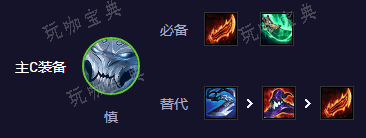 慎:作为核心输出坦克,配备羊刀(鬼索的狂暴之刃)加速攻速叠加,青龙刀(朔极之矛)加快技能释放频率,以及巨杀(巨人杀手)针对敌方高血量单位。