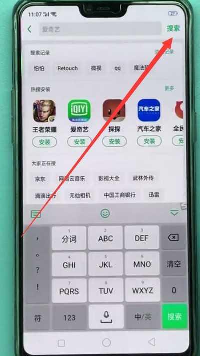 2、点击手机屏幕顶端的搜索栏。