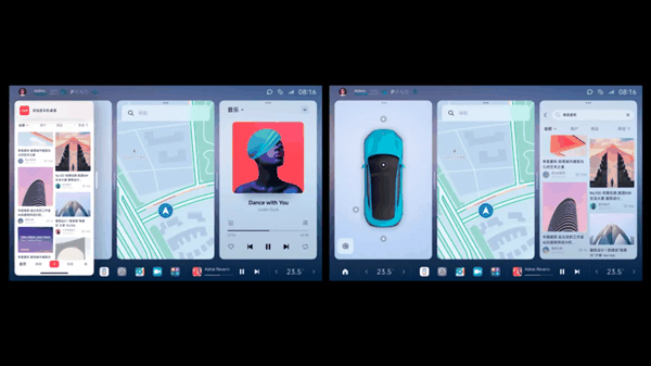 更重要的是系统底层融合,提供统一的原生交互体验。例如中控屏上能直接调用手机镜像,实现一屏多用,让驾驶位操控手机更顺手。甚至基于系统框架层的打通,用户能将手机应用以窗口卡片的形式,一键PIN到中控屏上。手机只提供算力,其余显示、声音和交互都在车机上执行,中控屏上的App不是简单的投屏,而是可以独立操作,这给了车机使用手机全部生态应用的潜力。