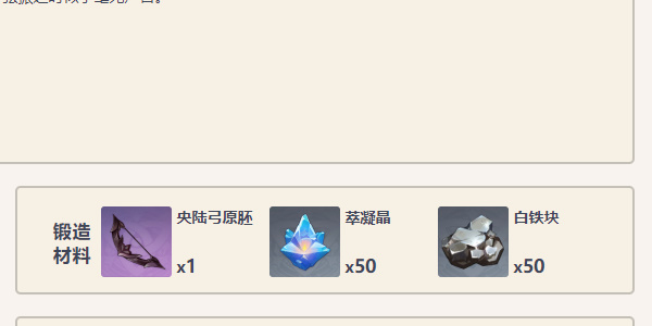 央陆弓原胚x1、萃凝晶x50、白铁块x50。