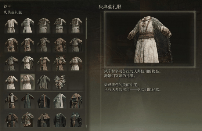 蓝庆典套:风车村蓝衣舞娘掉落,是风车村多明努拉庆典的特定服装,专供庆典主角少女们穿戴。